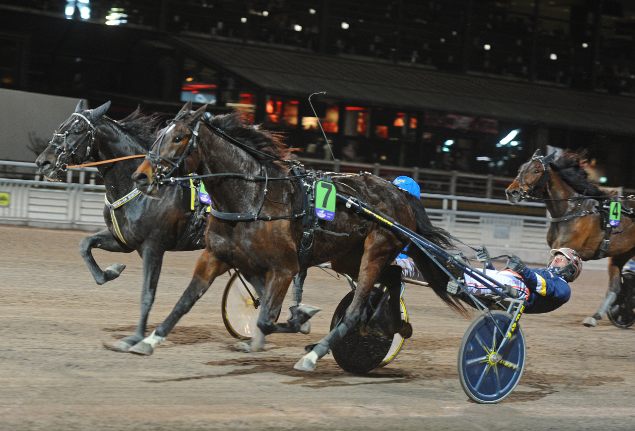 En sevärd duell utspelades i sista loppet på Solvalla igår.