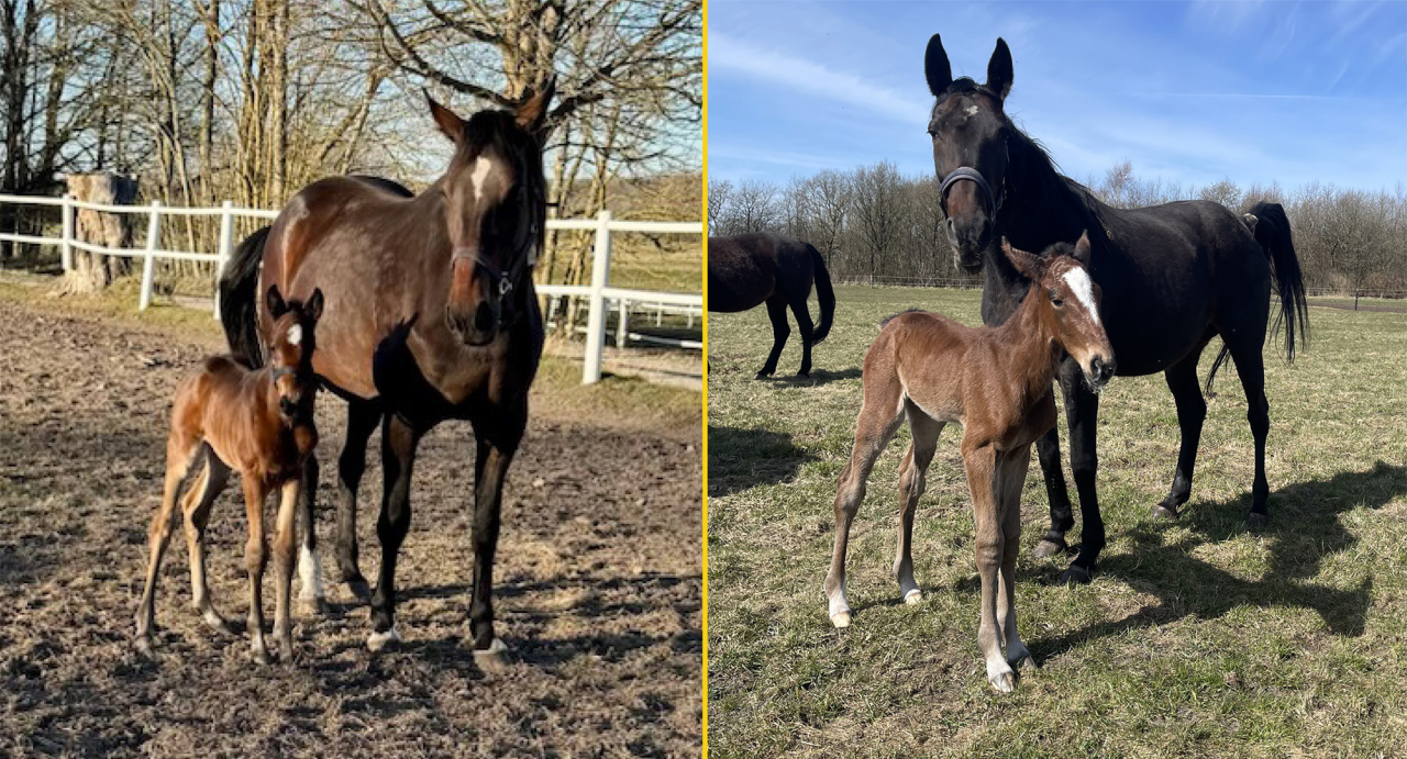 Två stolta mödrar med sina föl: Loaded Maria och U Take the Cake. Foto Privat