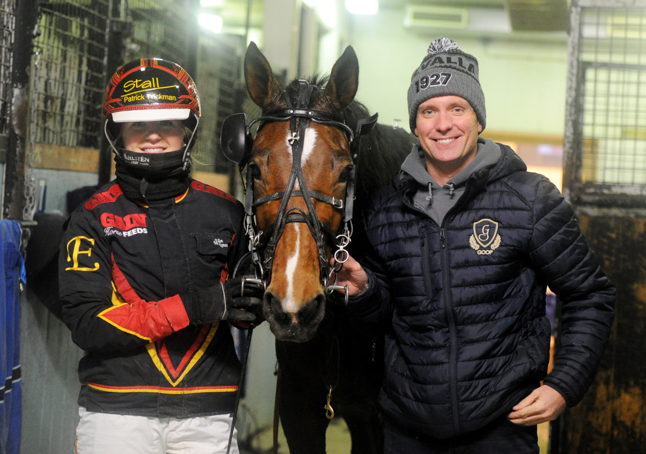 Årets tränarchampion på Solvalla heter Björn Goop. Här tillsammans med Elin Wickman, som avslutade med att vinna sista loppet med BG-tränade One Deep Valley. Foto: Adam Ström/stalltz.se