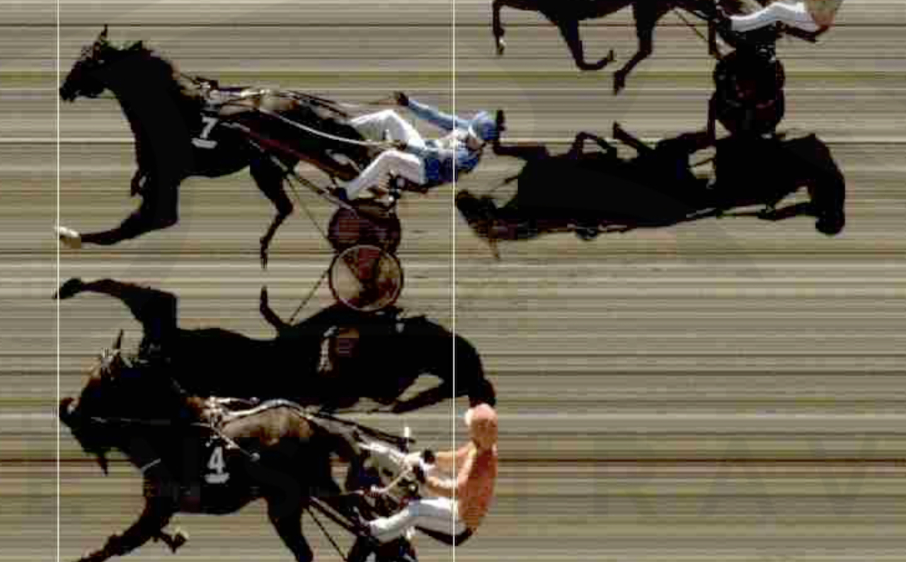 Kan man vara säker på att det är dött lopp av målfotot som visas att döma? Nej, men Jägersros måldomare kan heller inte säga att Johan Untersteiners Crew Lane var ensam först på mållinjen.