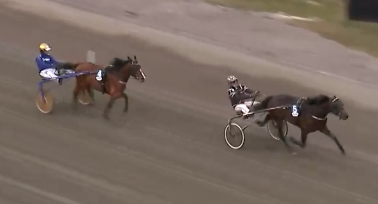 Conrads Emil tog andra raka segern efter en blixtsnabb inledning och nästan lika snabb avslutning tillsammans med sin tränare Jörgen S Eriksson. Skärmbild ATG Live