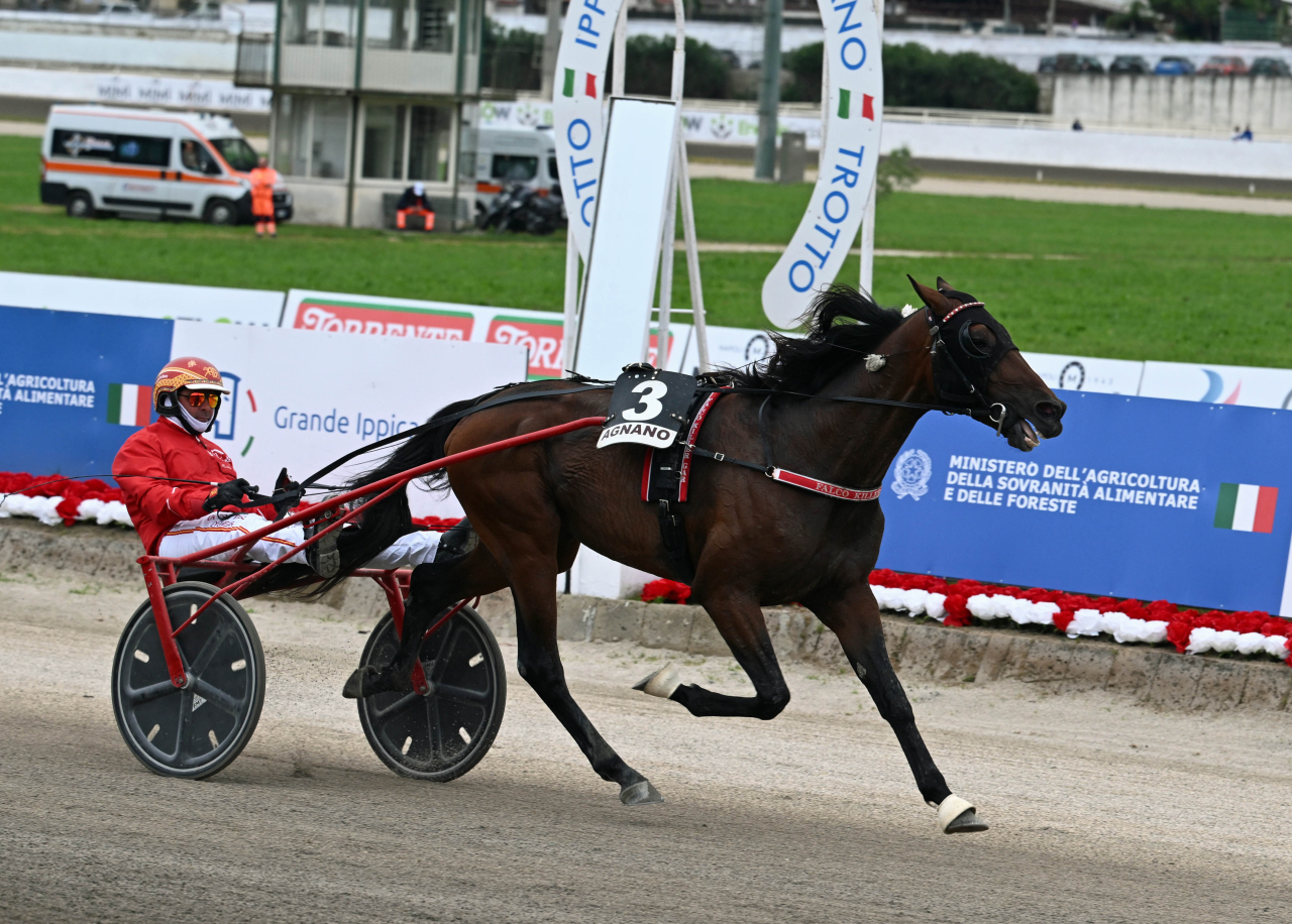 Alessandro Gocciadoro dominerade i både hingstarnas och stonas uppgörelse i Gran Premio Regione Campania (€66.000) för treåringar, men det blev bara en seger med Falco Killer Gar sedan målettan Funny Gio diskats för snäv körning i ett tidigt skede av loppet.